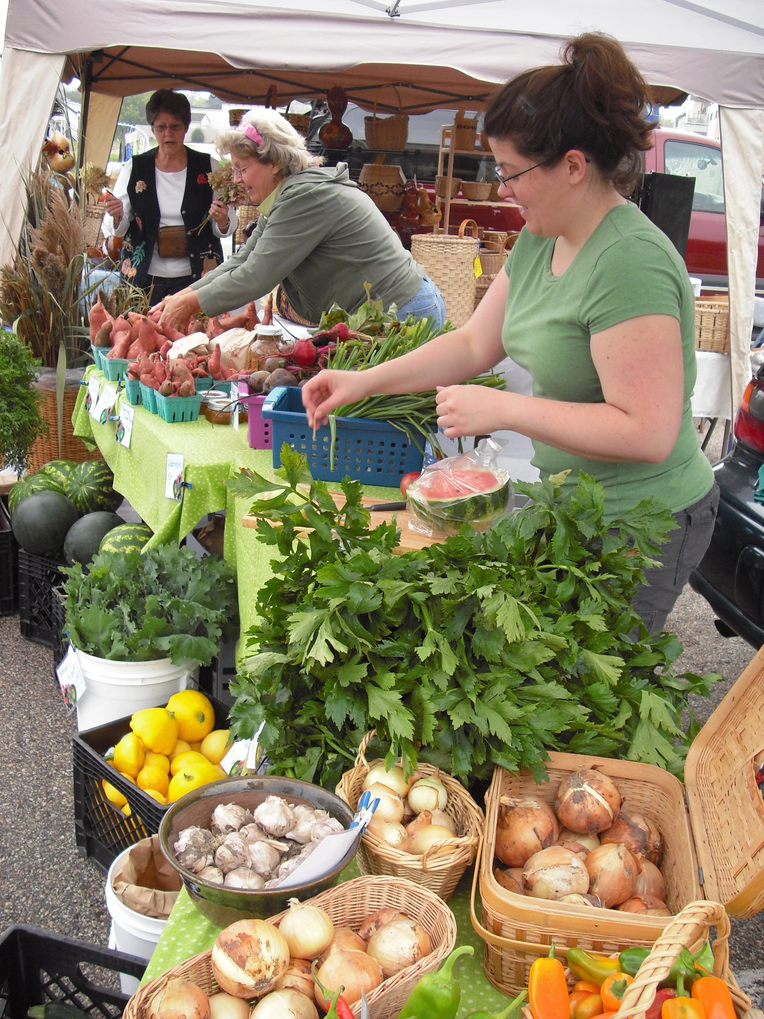 Farmers Caryl and Gary were growing produce for friends and family. The year before in 2008, they started having so much extra produce. We needed to figure out what to do with it all. Daughter Tara was in full-time grad school at the time and had some free Saturdays available. She thought it would be a brilliant idea to try to sell produce at a local farmers' market. She applied to the Delafield Farmers' Market and was immediately accepted as a vendor.