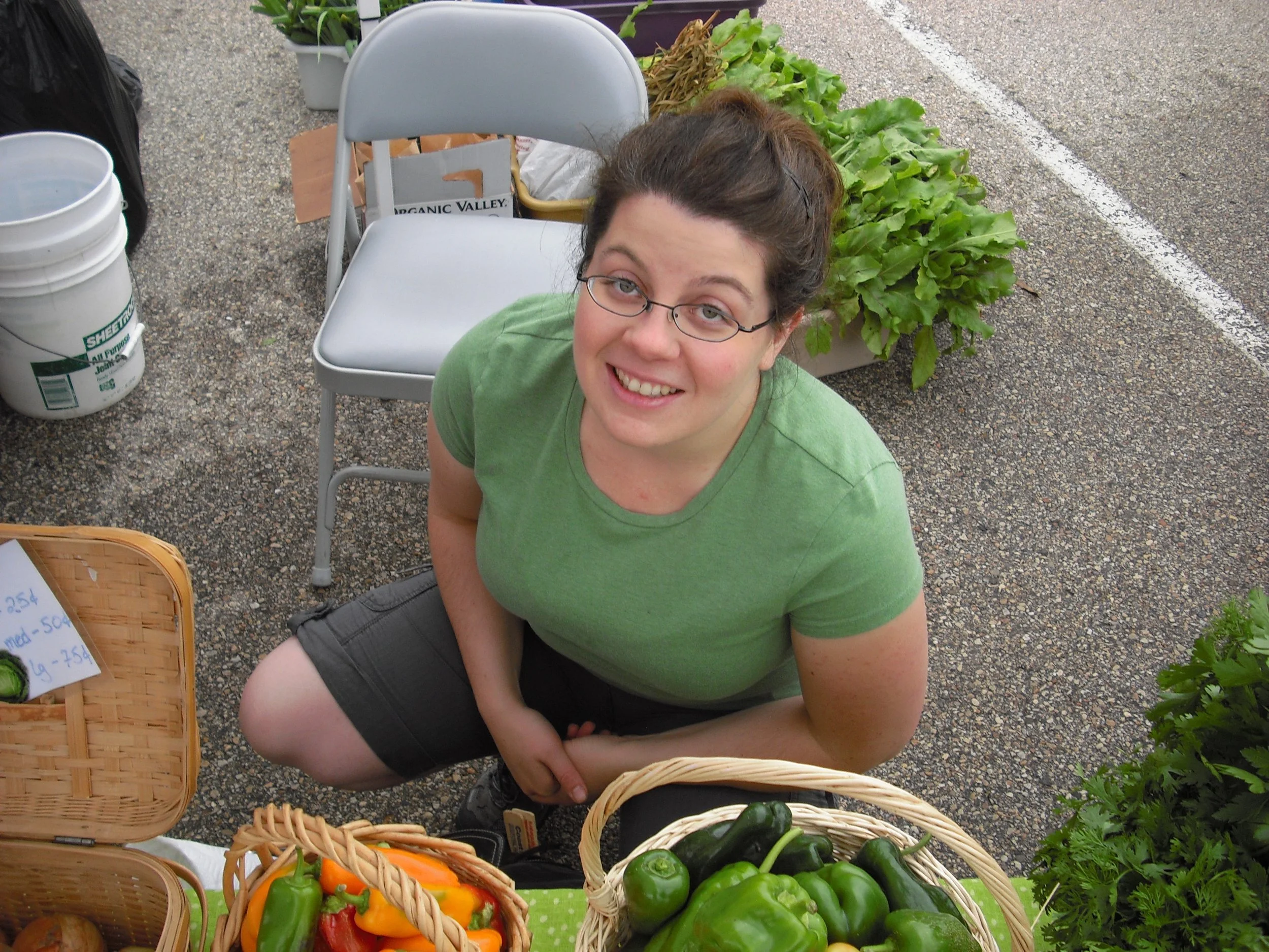 Now what? Well, she needed help. So she sweet talked (aka dragged) her sister Bretta into helping. With Tara's Chevy Malibu stuffed to the brim with a table and produce, Tara and Bretta arrived at their first market. Tara remembers being nervous about everything! Amazingly, we sold out that day! We wish we had pictures from that first market, but we do not (or we can't find them... haha!). But we do have pictures from 2010, our second year at the market. These are the pictures you see here on this post.
